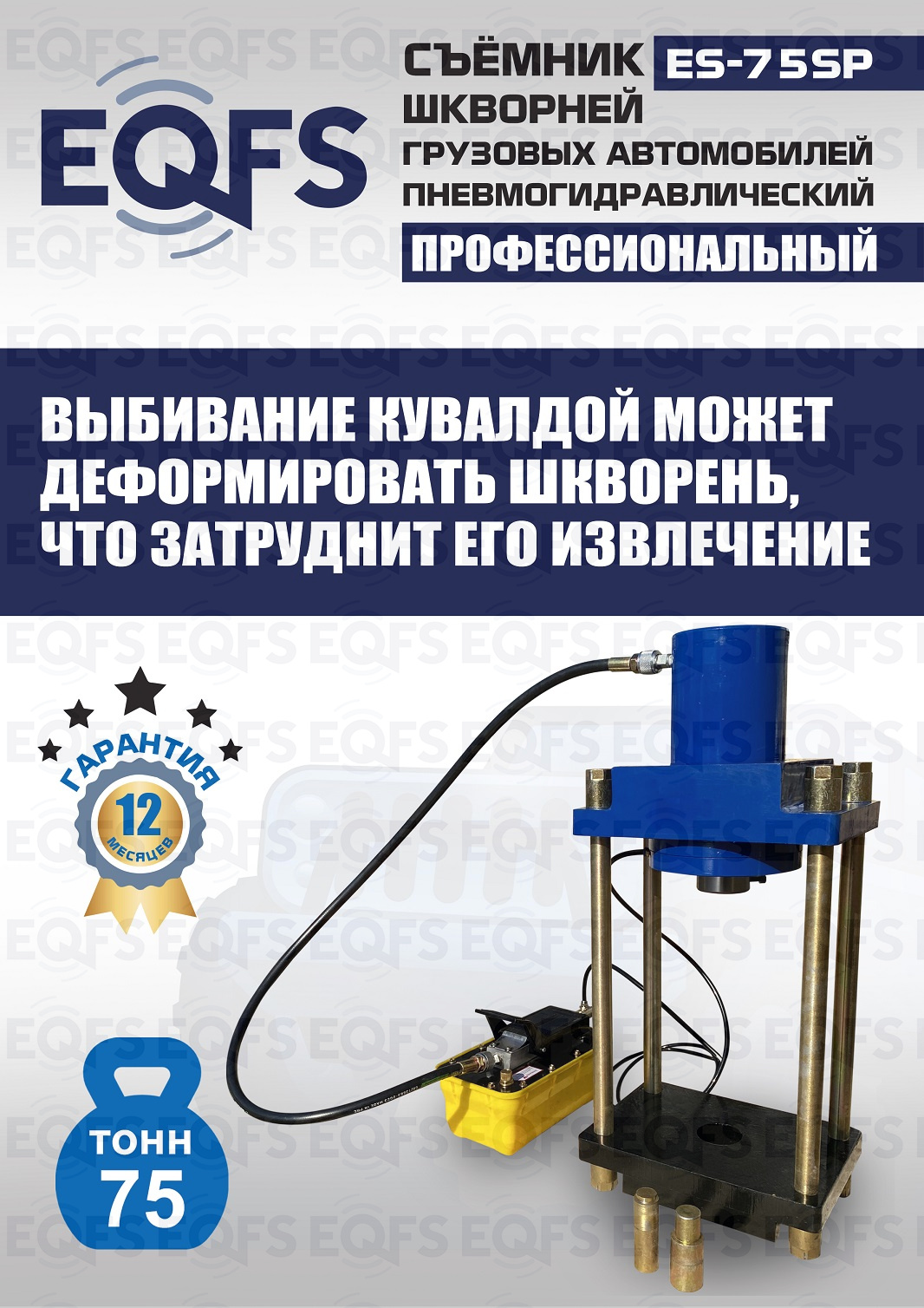 Съемник шкворней грузовых автомобилей ES-75SP позволяет избегать следующих операций: