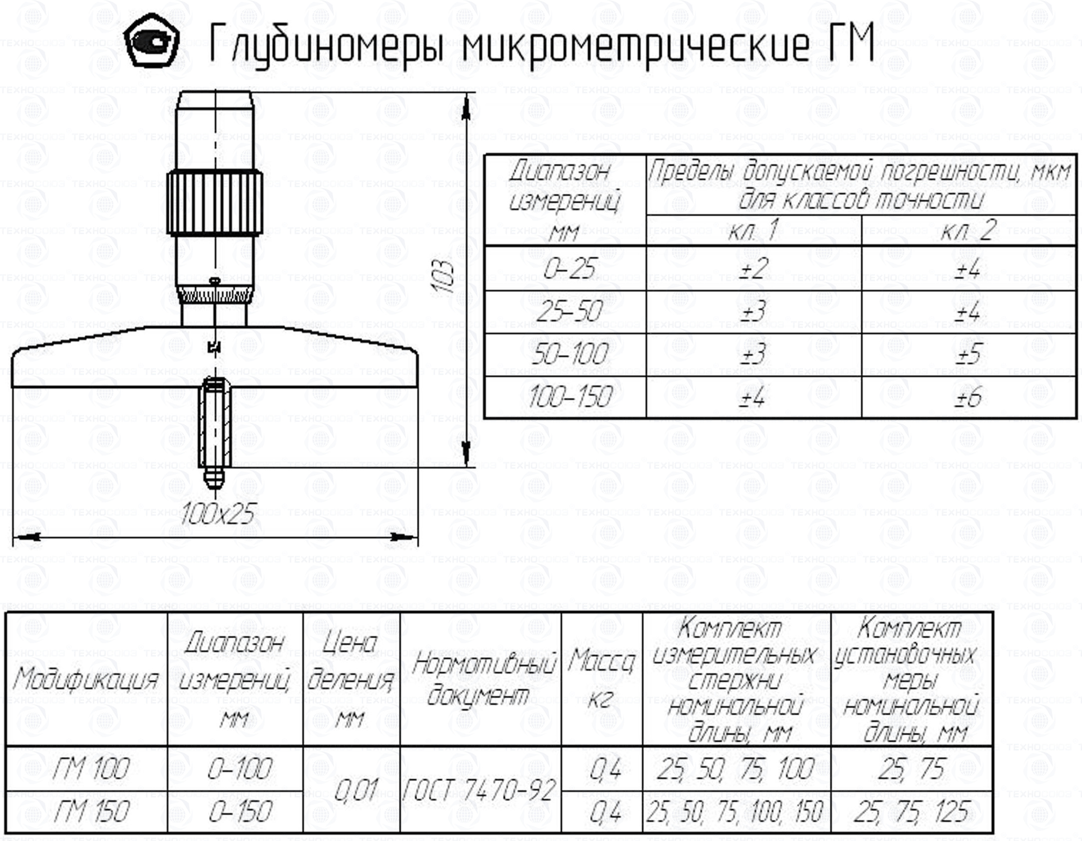 Глубиномер микрометрический ГМ-100 кл.2