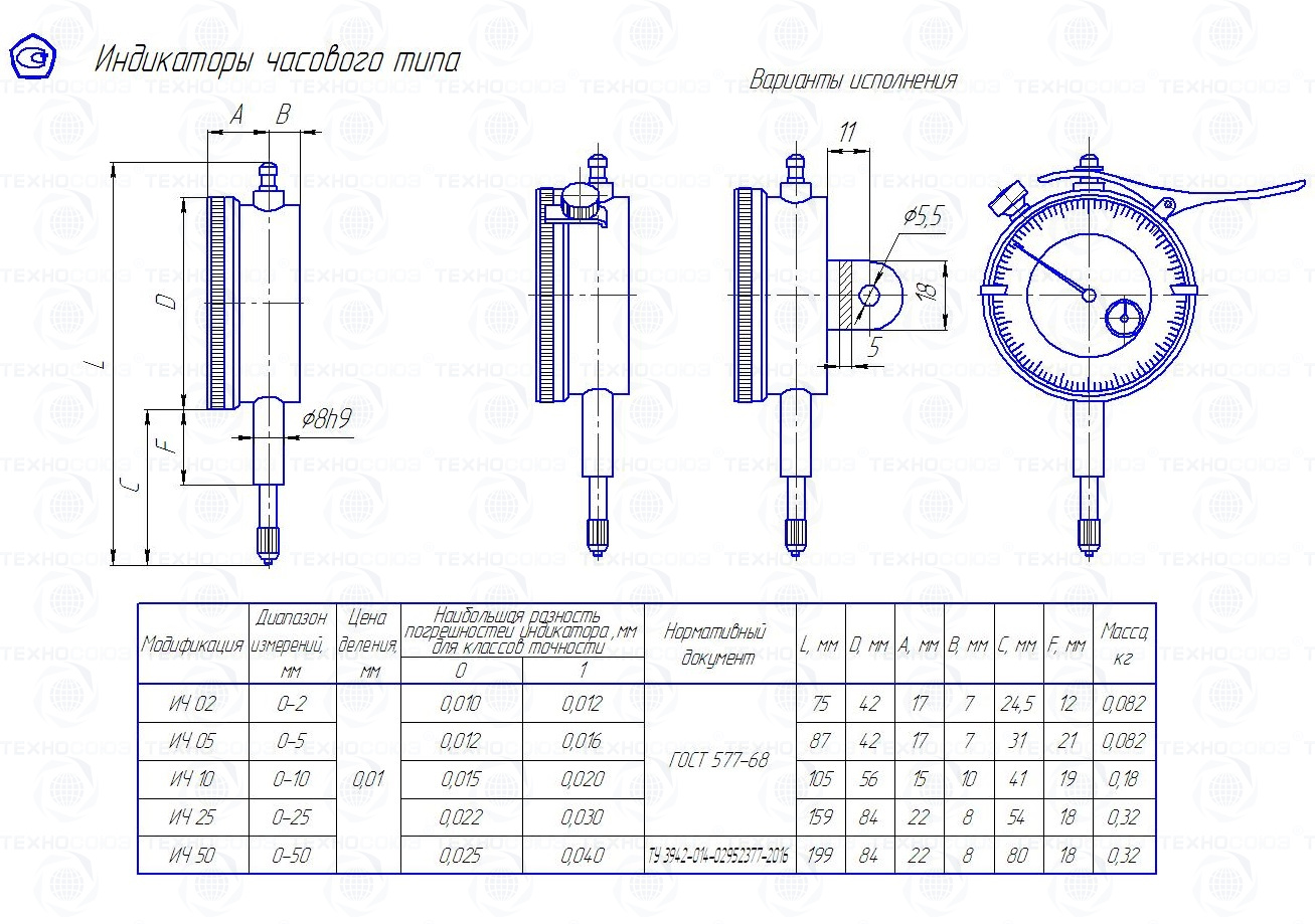 Крепят индикаторы либо за присоединительную гильзу диаметром 8h7, либо за ушко толщиной 5 мм с присоединительным отверстием диаметром 5 мм.