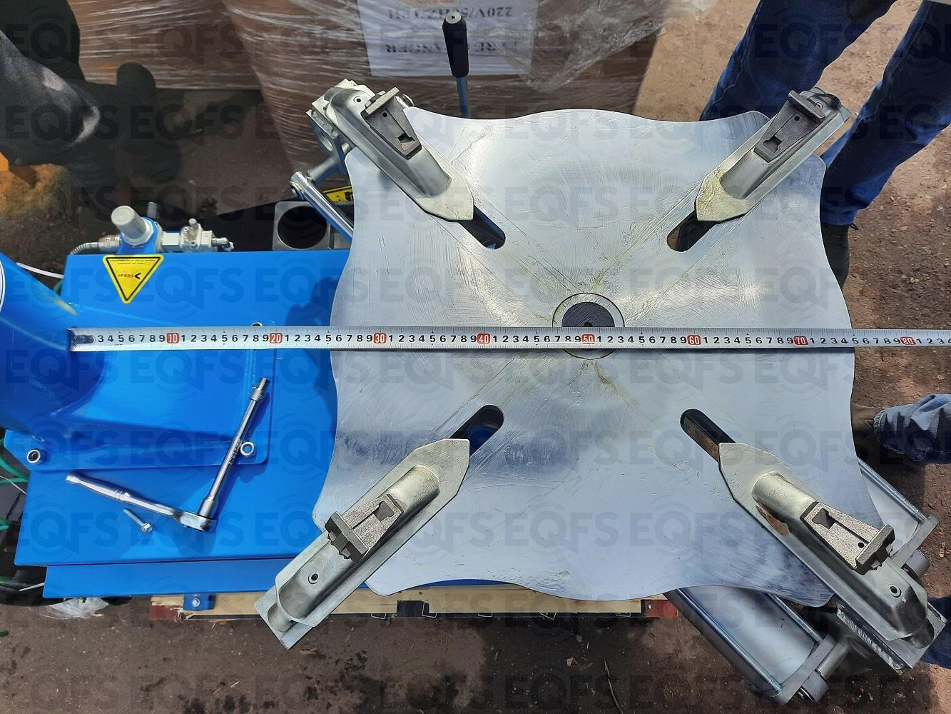 Полуавтоматического шиномонтажного станка ES-3023A для монтажа и демонтажа колес 11÷24”. В комплекте: встроенный бустер 24 литра (взрывная подкачка) + пистолет для подкачки шин + монтажка + регулятор давления с влагоотделителем и манометром.