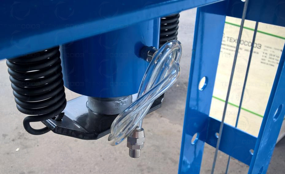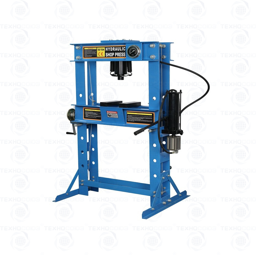 • Пресс укомплектован гидравлическим ручным насосом с максимальным усилием 50т.