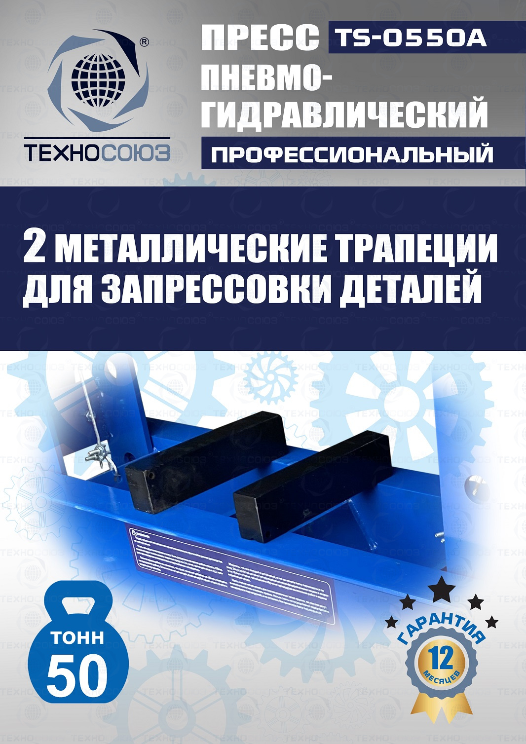 Конструктивные особенности TS-0550A Пресс 50 тонн пневмогидравлический / ручной :